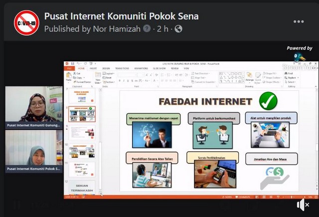 22 Februari 2021 | Aktiviti TerkiniBersesuaian dengan tujuan utama taklimat Klik Dengan Bijak yang dilaksanakan oleh Kementerian Komunikasi dan Multimedia (MCMC), Pusat Internet Komuniti Pokok Sena bersama-sama Pusat Internet Komuniti Gunung Hilir telah mengadakan Taklimat Klik dengan Bijak secara online memandangkan negeri Kedah masih lagi di dalam tempoh PKPB (Perintah Kawalan Pergerakan Bersyarat). Taklimat ini telah mengambil masa hampir satu jam melalui platform LIVE FB (Facebook) sebagai saluran untuk kakitangan Pusat Internet Komuniti berkomunikasi secara online dengan pengguna-pengguna media sosial yang lain.